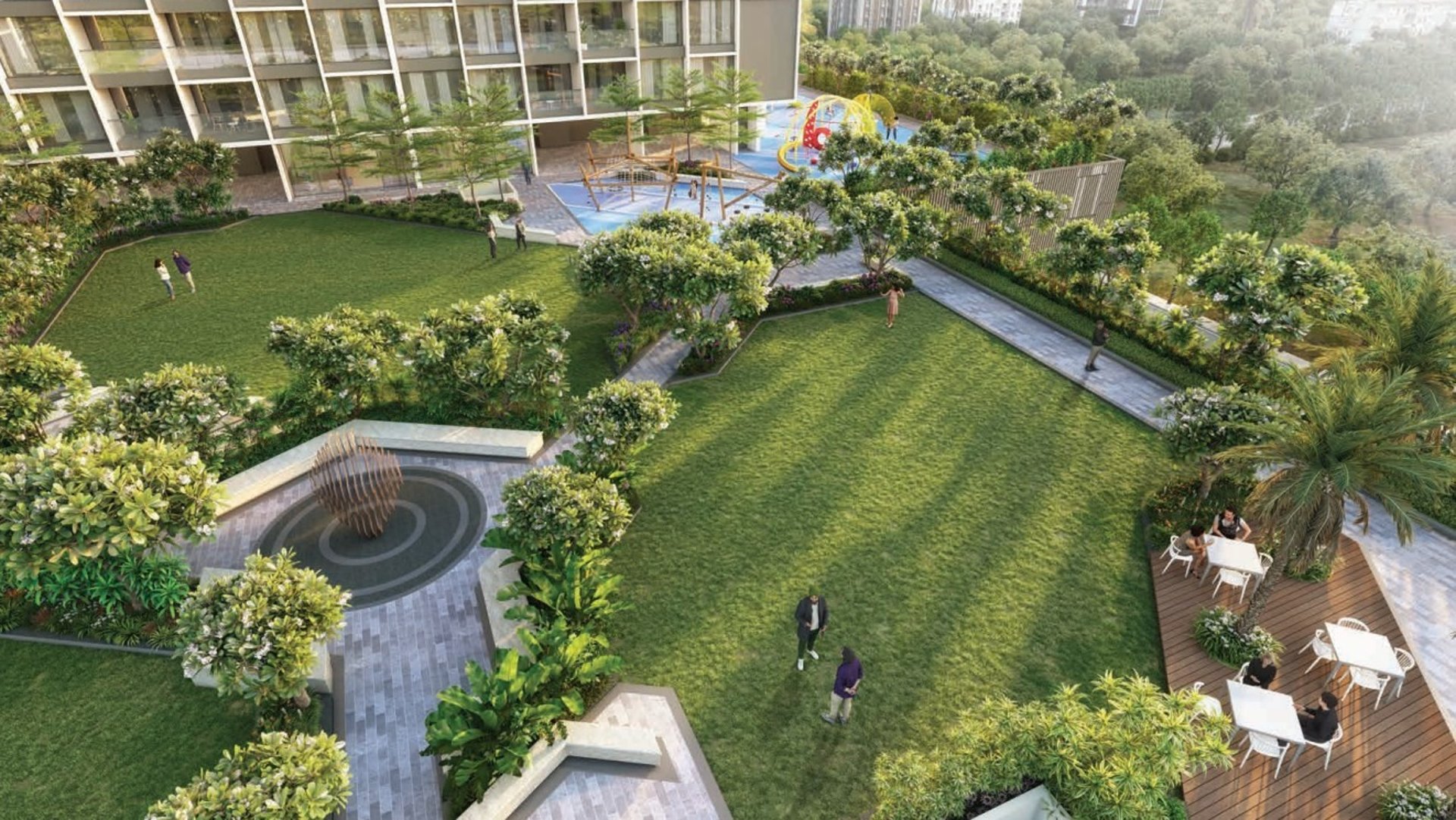 Green‑First Design – Rain‑water recharge, STP, lush, landscaped courts